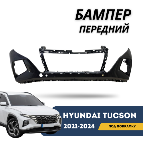 Бампер передний для Hyundai Tucson. Деталь новая, поставляется ПОД ПОКРАСКУ. Производство QPart. Данный бампер специально разработан для моделей КОРЕЙСКОЙ СБОРКИ (длинная база LWB), выпускаемых с 2021 по 2024 год. Изготовлен из ударопрочного эластичного пластика, полностью соответствующего сложной геометрии четвертого поколения Tucson.